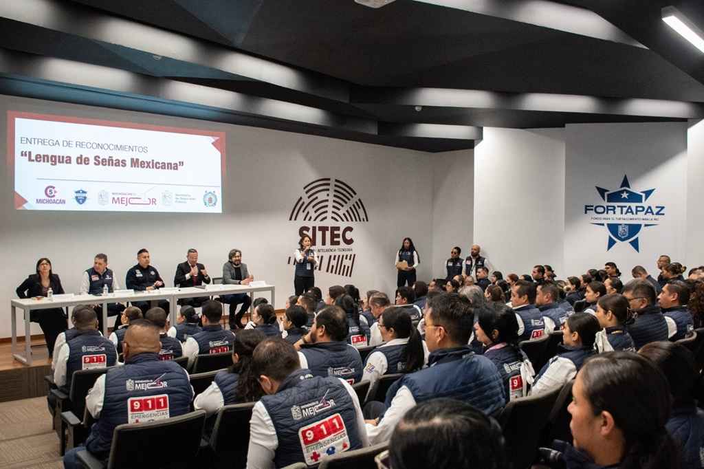 Morelia, Michoacán, a 16 de enero de 2026.- La Universidad Michoacana de San Nicolás de Hidalgo (UMSNH) y la Secretaría de Seguridad Pública (SSP) de Michoacán impulsan una cultura de la inclusión, con la conclusión del Curso de Lengua de Señas Mexicana impartido por la casa de estudios a personal del Centro Estatal de Comando, Comunicaciones, Cómputo, Control, Coordinación e Inteligencia (C5) de la dependencia estatal.
