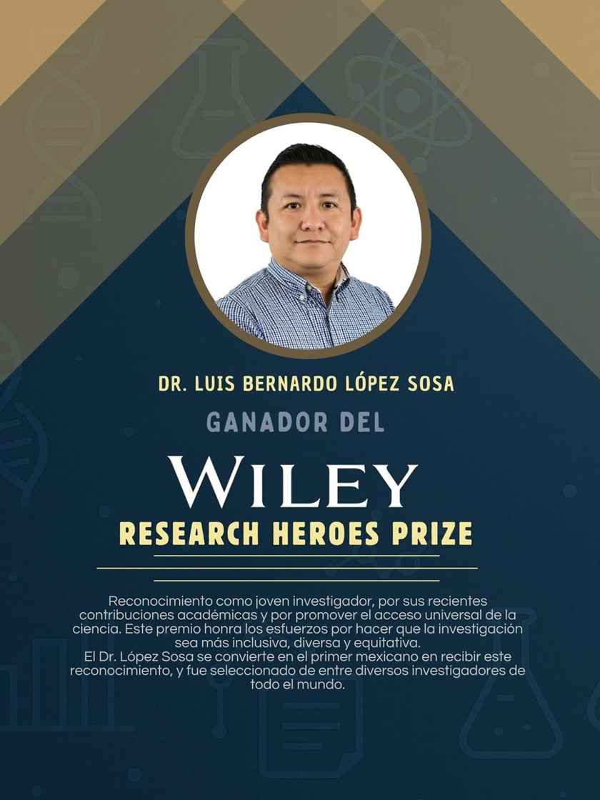 En la edición 2026 del Wiley Research Heroes Prize, el investigador mexicano fue seleccionado como uno de los cinco ganadores internacionales de un total de mil 363 solicitudes de 88 países. Los demás galardonados son originarios de Irlanda, Alemania, India y Kenia.