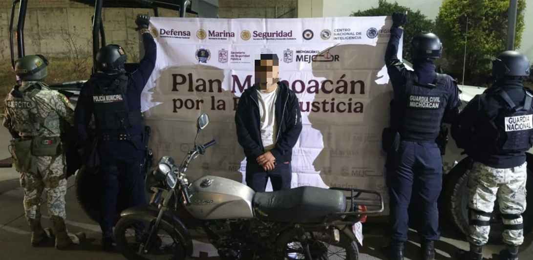 Morelia, Michoacán, 29 de enero de 2026.- Las secretarías de Seguridad Pública (SSP) y de la Defensa Nacional (Defensa), en coordinación con la Guardia Nacional y policías municipales, realizaron acciones operativas en la región Zamora, que derivaron en el aseguramiento de una persona en posesión de una motocicleta con reporte de robo y de una mujer con droga sintética.